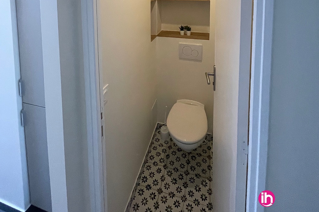 Appartement meublée F2 tout équipé 42 m² entièrement refait à neuf au troisième étage avec ascenseur. Cuisine complètement équipée (Four, micro-onde, lave-vaisselle, frigidaire, congélateur, cafetière, grille-pain, bouilloire, plaque électrique) Pièce de vie tout confort, télévision, canapé. WC indépendant. Salle de douche avec machine à laver séchante.