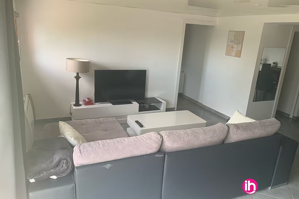 - 1 salon avec un canapé convertible deux personnes plus un lit dépliant.