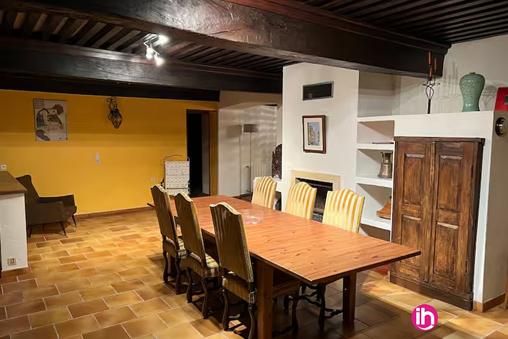 Cette maison située à proximité de l’autoroute du sud A7 offre une grande capacité d’accueil..