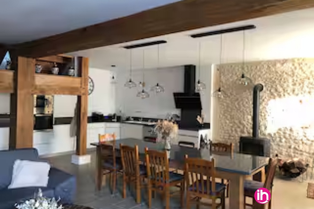Ce logement paisible offre un séjour détente pour toute la famille. Cette maison conjugue le charme de l’ancien avec ses pierres et ses poutres en bois, avec le moderne.