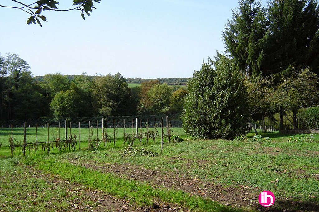 - grand pré d’un hectare longeant la Nièvre, et jardin clôturé autour de la maison avec verger et fleurs.