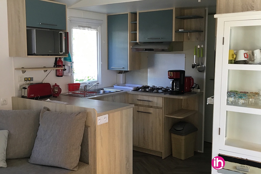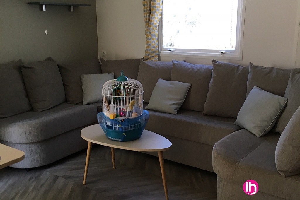 Mobile home de ht de gamme de 40 m2 , avec terrasse de 20 m2, couverte, entièrement équipé, lave linge, lave vaisselle, télé, aspirateur, fer à repasser, jeux de société, lit pour bébé, pouvant accueillir 8 personnes, vous attend au camping des Rives de Condrieu, pour des vacances bien méritées, situé dans un environnement idéal, Ce très beau mobile home haut de gamme, est composé d'une grande pièce de vie, de 3 chambres, 2 sdd, 2 wc .